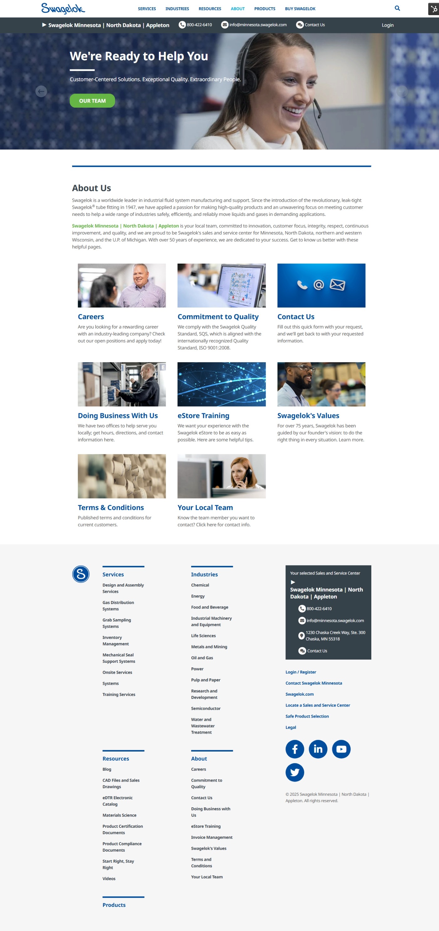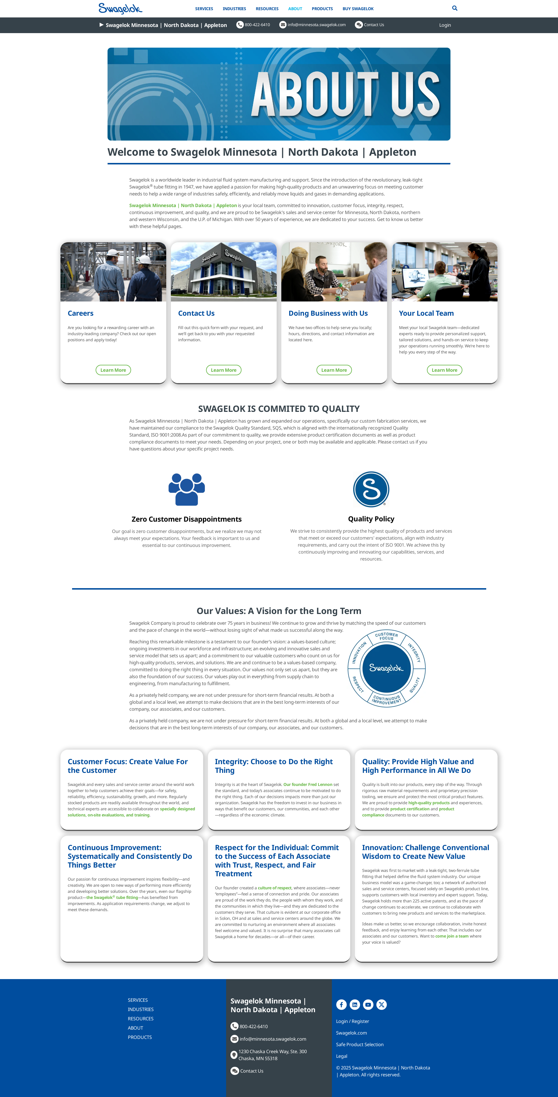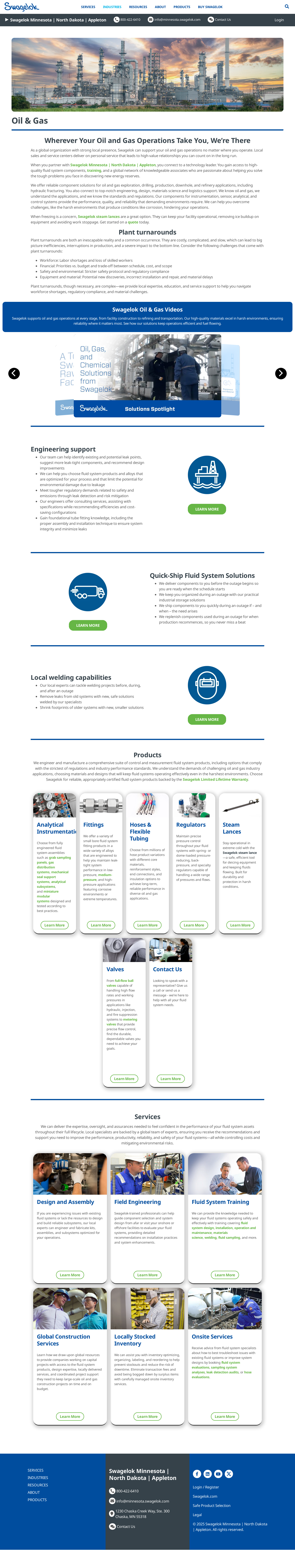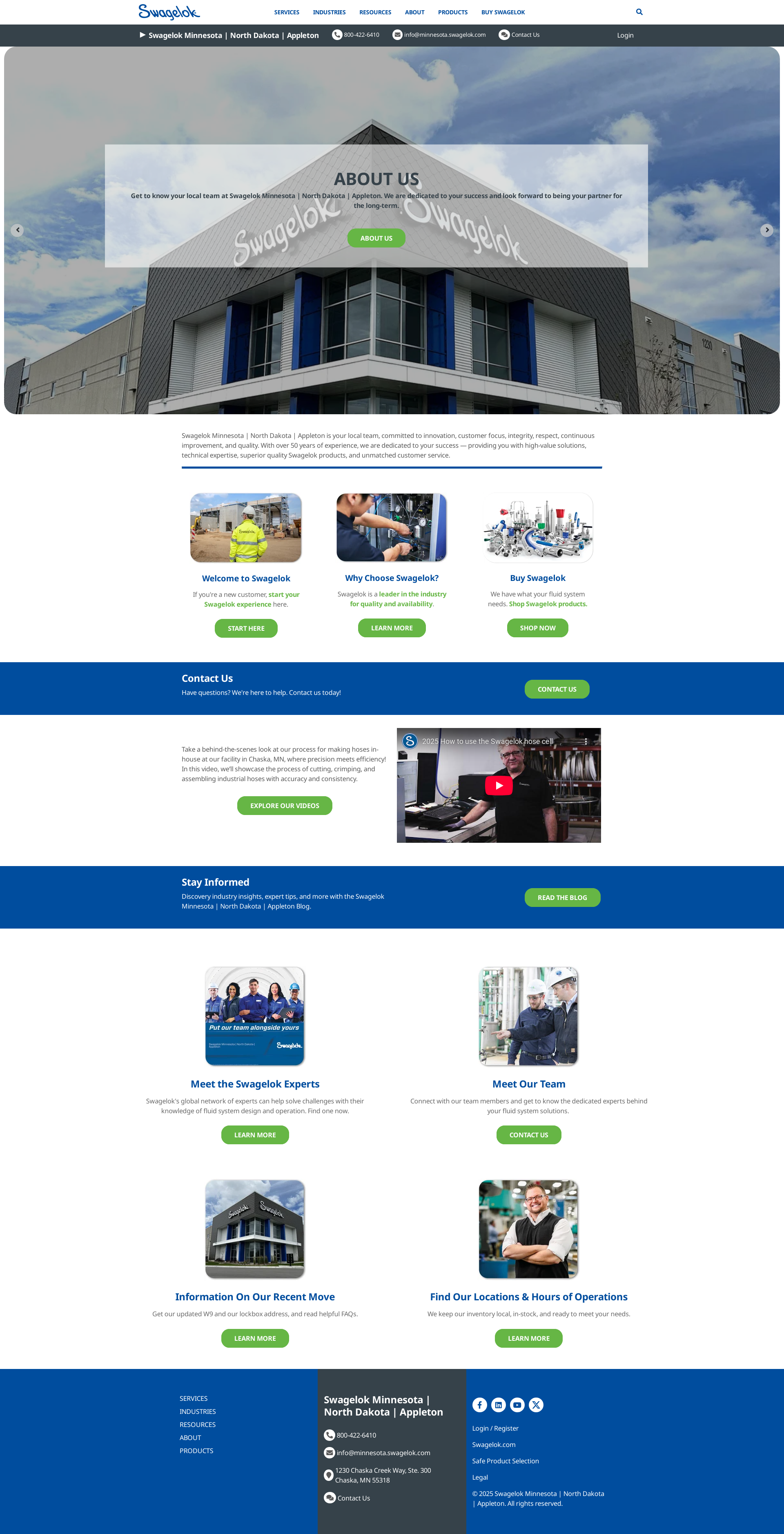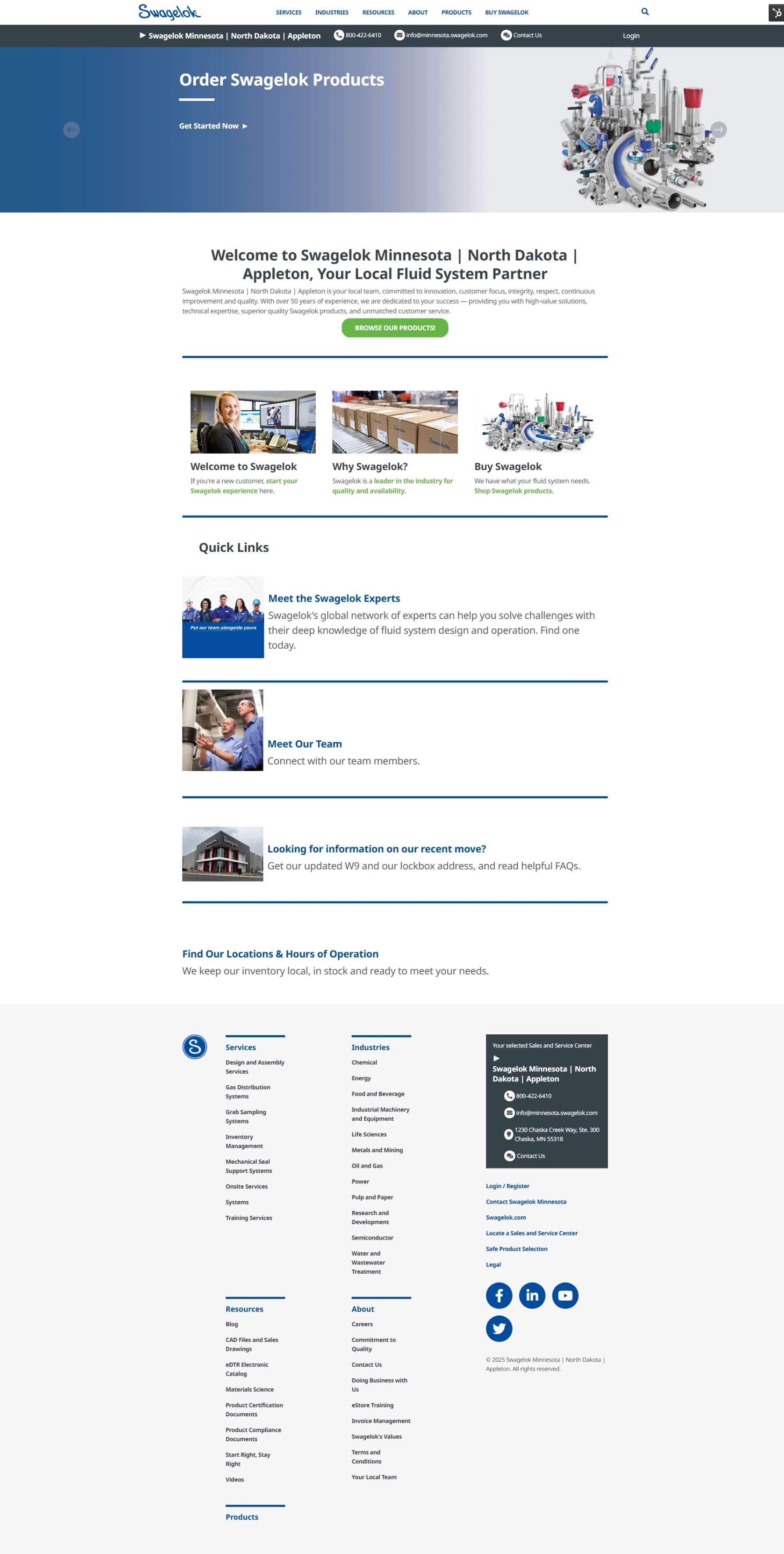 I led the full redesign of Swagelok Minnesota’s 50+ page website, completing the project ahead of schedule with improved UX, modern layouts, and SEO enhancements. The result was a faster, more user-friendly site with stronger search visibility and overall performance.