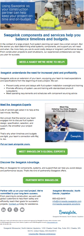 Below is one of the many marketing emails that I sent during my time at Swagelok Minnesota
